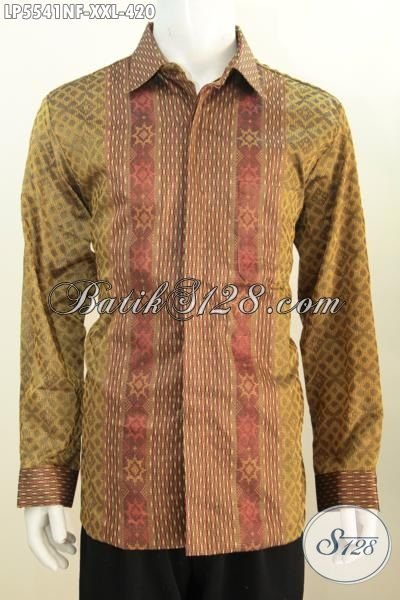 Toko Online Batik Solo, Sedia Kemeja Tenun Istimewa Model Lengan Panjang Full Furing Dengan Motif Elegan Berbahan Halus Untuk Pria Berbadan Gemuk [LP5541NF-XXL]