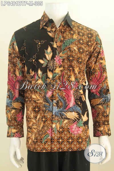 Toko Online Busana Batik Pilihan Komplit, Jual Kemeja Lengan Panjang Pakai Furing Berbahan Halus Motif Mewah Kombinasi Tulis Buat Pria Terlihat Istimewa [LP6481BTF-M]