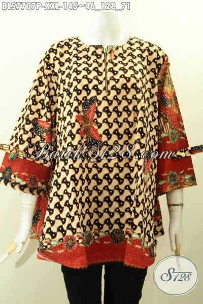 Toko Online Busana Batik Solo, Sedia Blus Jumbo Bahan Batik Printing Motif Keren, Hadir Dengan Model Pita Dan Resleting Depan Harga 145K [BLS7707P-XXL]