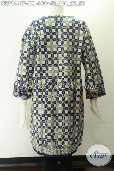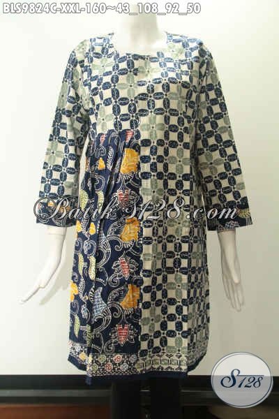 Toko Online Pakaian Batik Khas Jawa Tengah, Sedia Blouse Lengan 7/8 Tanpa Kerah Motif Modern Berbahan Halus Dan Di Lengkapi Resleting Jepang Di Bagian Belakang, Spesial Buat Wanita Gemuk [BLS9824C-XXL]