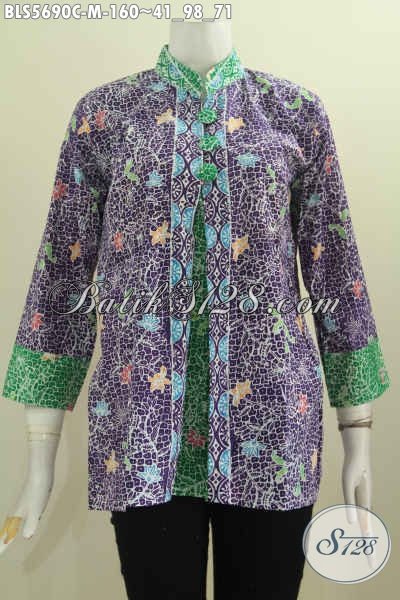 Toko Online Pakaian Batik Wanita, Sedia Blus Pias Desain Terkini Dengan Kancing Besar Motif Bagus Proses Cap, Cocok Buat Ke Kantor [BLS5690C-M]