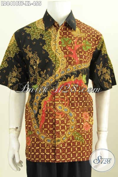 Toko Pakaian Batik Online Terlengkap, Sedia Baju Batik Pria Elegan Bahan Halus Motif Mewah Tulis Model Lengan Pendek Pake Furing 400 Ribuan [LD8418TF-XL]
