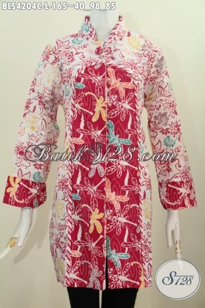 Toko Pakaian Batik Paling Up To Date, Sedia Blus Batik Cap Kerah Shanghai Kancing Satu Warna Merah Kombinasi Putih Modis Buat Ke Pesta [BLS4204C-L]