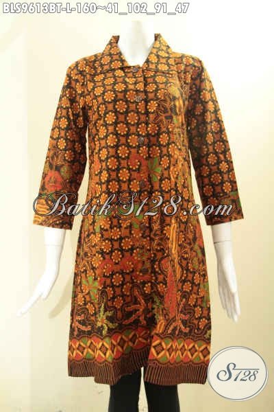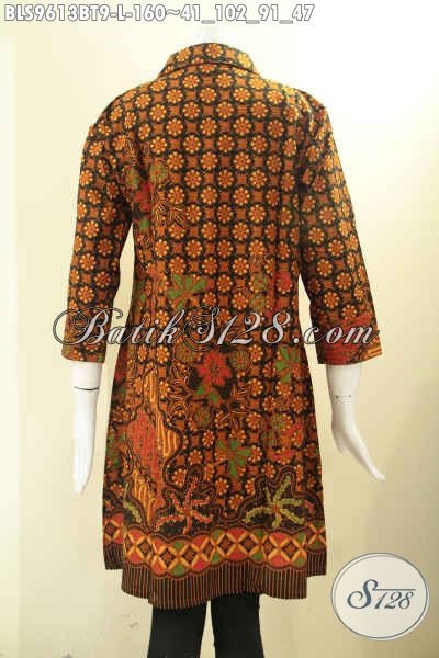 Toko Pakaian Batik Solo Online Kwalitas Terjamin, Jual Blouse Batik Model Krah Motif Elegan Klasik Lengan 7/8 Pakai Kancing Depan, Pas Untuk Acara Resmi [BLS9613BT-L]