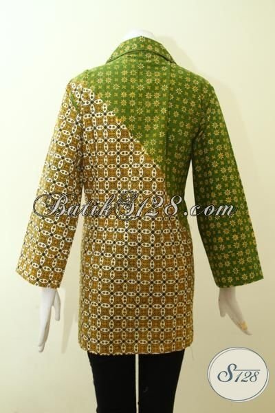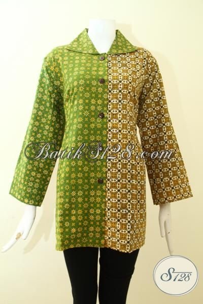Trend Baju Batik Wanita Muda Tampil Cantik Dan Dan Elegan, Blus Batik Dual Motif Kombinasi Warna Hijau Muda Dan Tua [BLS2568CT-XL]
