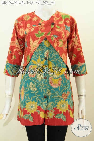 Trend Busana Batik Wanita, Blus Batik Kombinasi Rompi Sambung 2 Warna Motif Bunga Proses Printing 145K [BLS7277P-M]