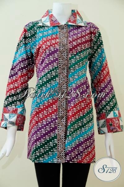 Trend Busana Batik Wanita Muda Jaman Sekarang, Blus Batik Kerja Dengan Kombinasi Beragam Warna Lebih Keren Dan Lebih Modern [BLS1567CT-XL]