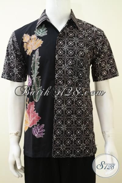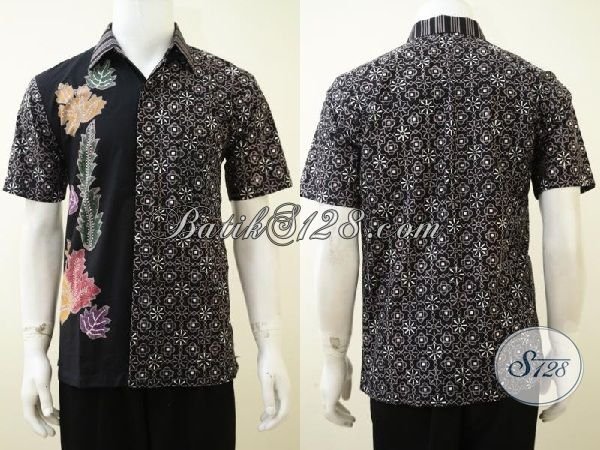 Trend Kemeja Batik Dual Motif Dengan Dasar Hitam Elegan, Baju Batik Lengan Pendek Cap Tulis Kwalitas Premium Harga Minimum [LD3228CT-M]