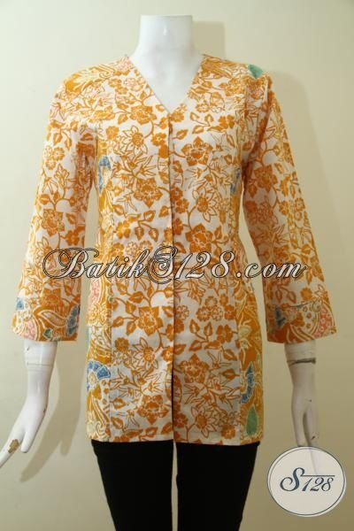 Trend Pakaian Batik Wanita Muda Warna Kuning Motif Terkini, Baju Blus Batik Seragam Ke Kantor Untuk Tampil Berkelas [BLS2635C-S]