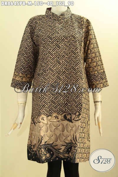 Tunik Batik Dress Krah Shanghai, Busana Batik Solo Elegan Motif Klasik Printing Cabut Di Lengkapi Resleting Belakang Dan Kantong Dalam Lengan 7/8, Pas Untuk Acara Resmi [DR8645PB-M]