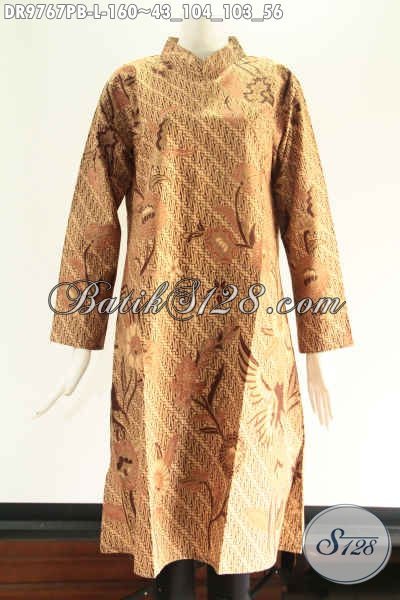 Tunik Batik Seragam Kantor Wanita Karir Nan Berkelas, Model Kerah Shanghai Lengan 7/8 Pakai Resleting Di Bagian Belakang [DR9767PB-L]