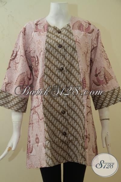 Wanita Gemuk Tampil Modis Dan Trendy Dengan Blus Batik Solo Dua Motif Trend Masa Kini, Baju Batik Print Halus Ukuran 3L Desain Mewah Harga Murah [BLS3385P-XXL]